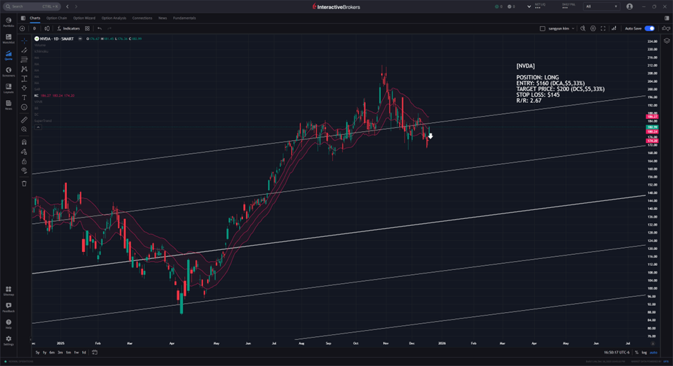- Confluence of Support ($160 Range): The most compelling entry zone lies around $160. This level represents a significant technical “confluence” where: